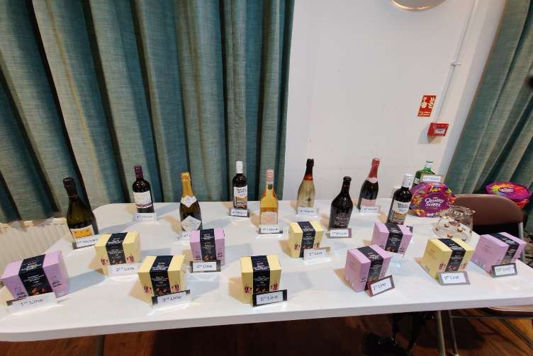 The bingo prizes awaiting collection by the winners |
